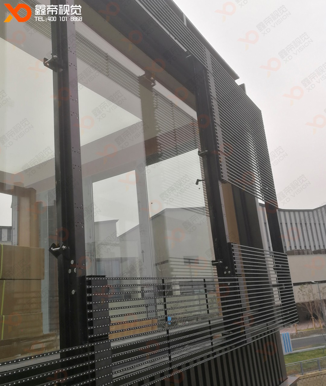 3、獨(dú)特的百葉窗設(shè)計(jì)——顯著提升LED光柵顯示屏的對比度,且不影響商戶的采光及通風(fēng)。