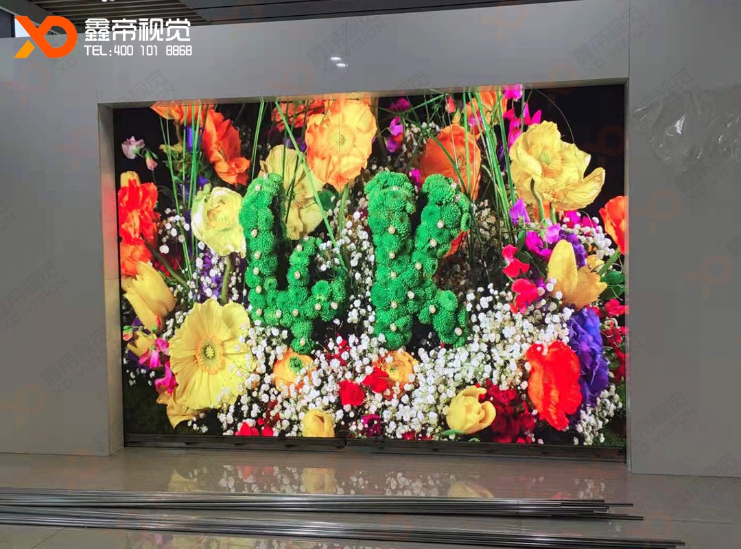 鑫帝視覺承建的湖南亙晟門窗有限公司一塊戶內(nèi)小間距開合LED屏和一塊戶內(nèi)小間距LED顯示屏成功點(diǎn)亮,用LED顯示屏結(jié)合動(dòng)感機(jī)械,表現(xiàn)出LED不一樣的美!