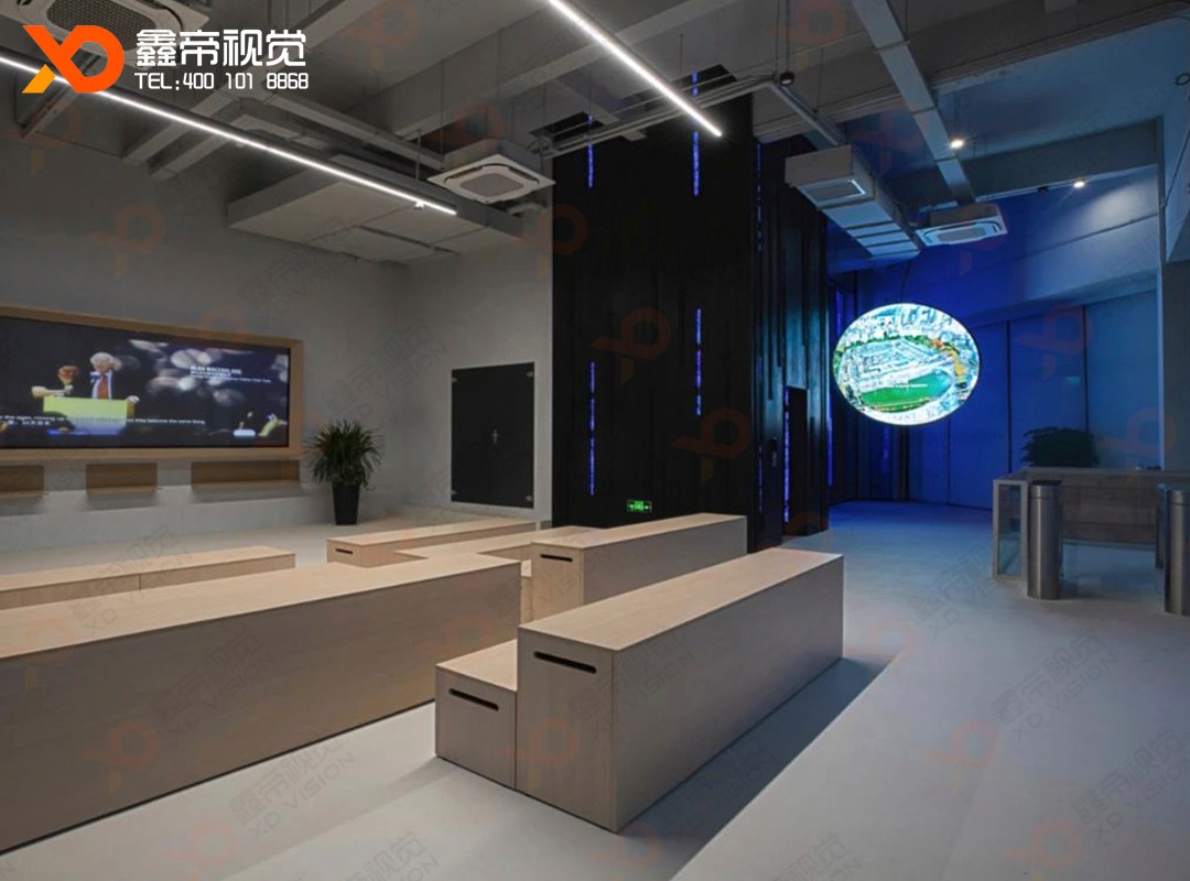 序廳多媒體播放裝置采用LED鍋蓋形屏幕,避免常規(guī)套路,更是一個吸睛的設(shè)計,讓人眼前一亮。