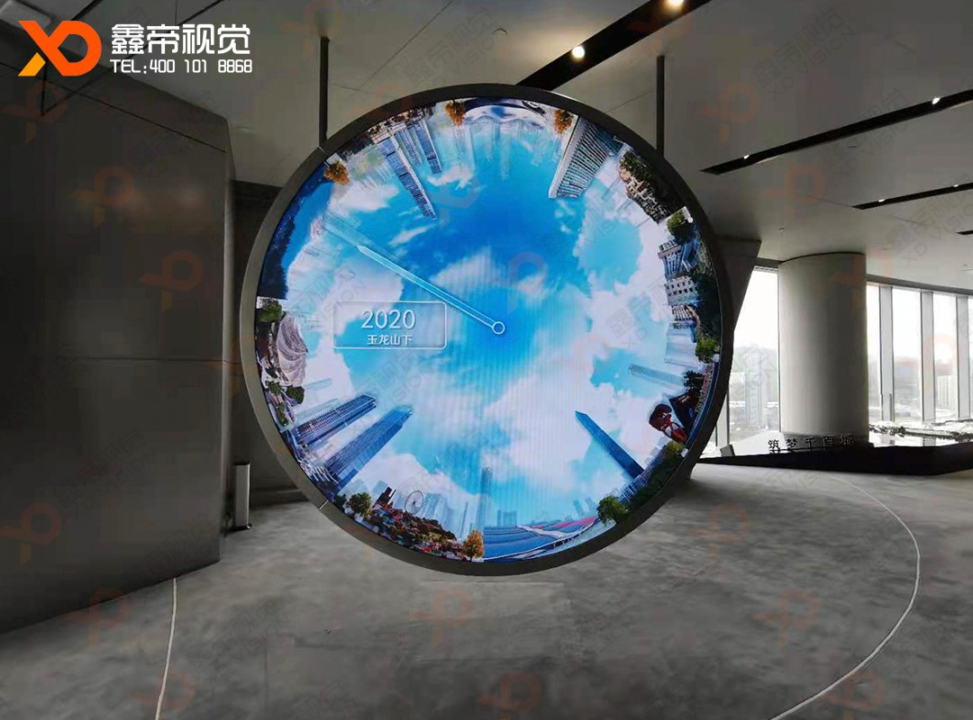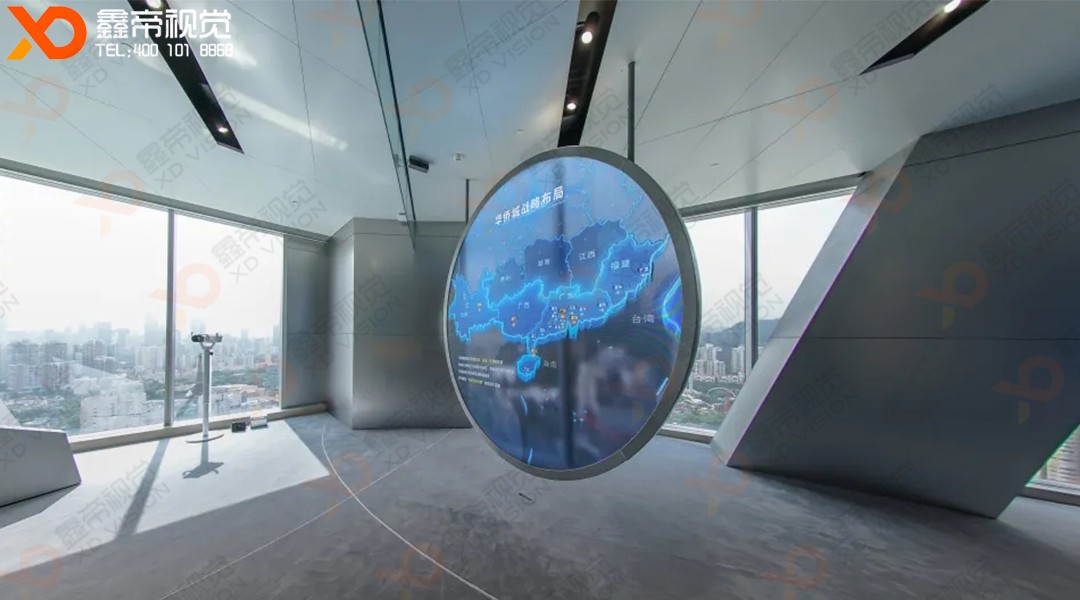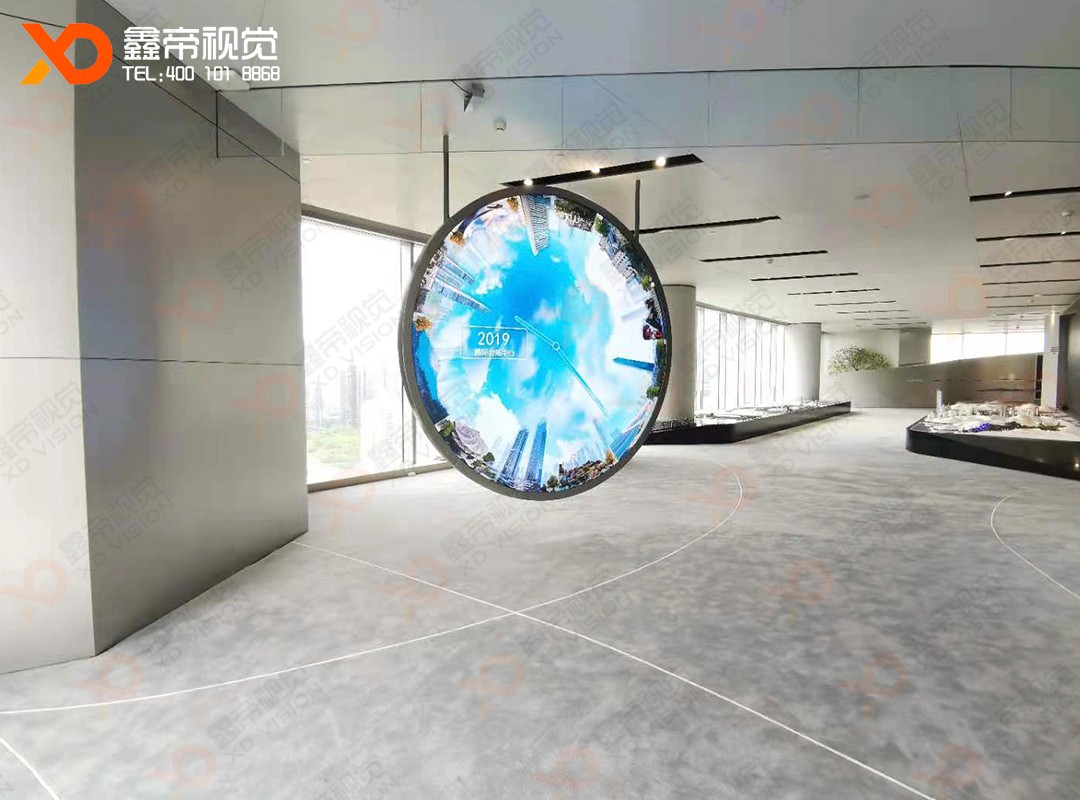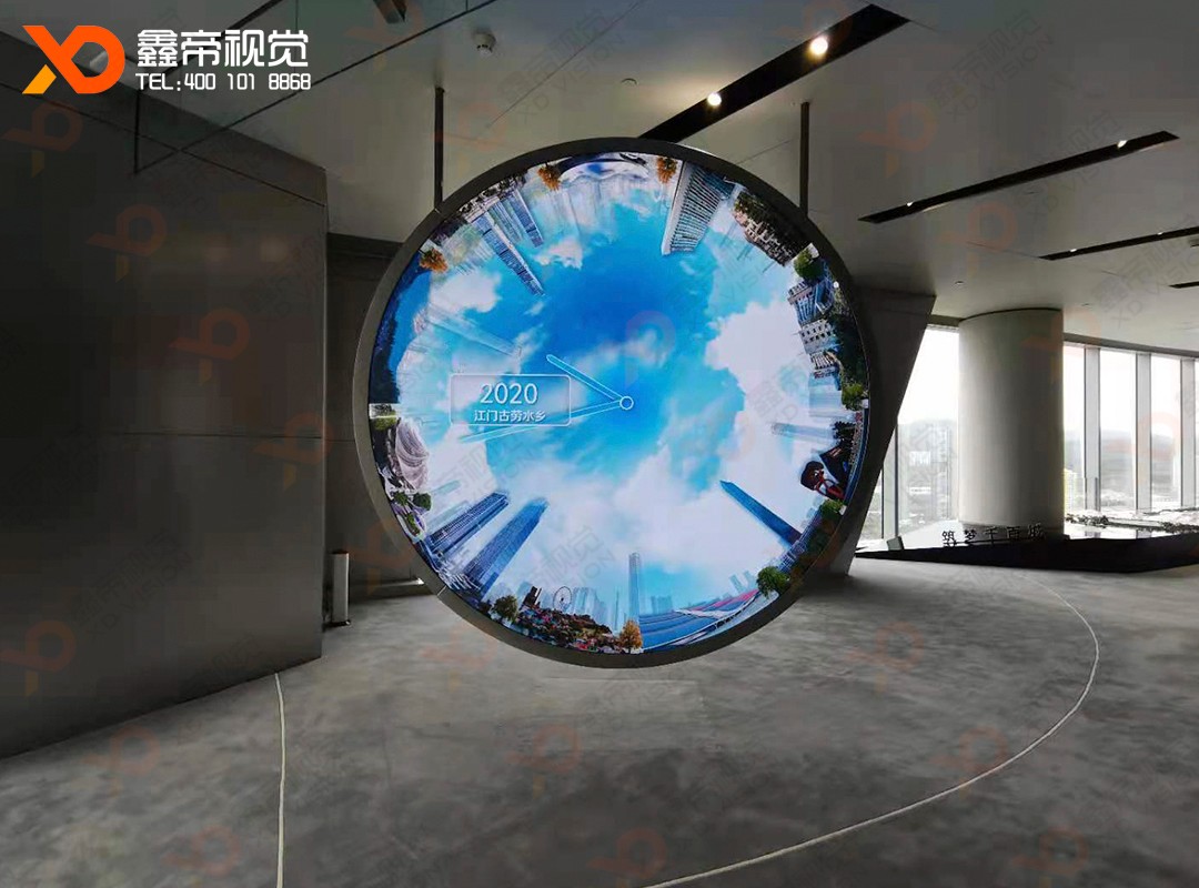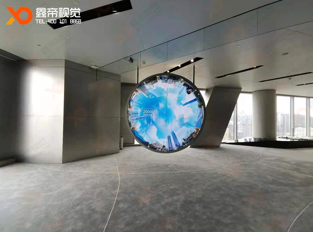 深圳華僑城集團(tuán)定制LED圓形藝術(shù)屏在深圳華僑城大廈30樓企業(yè)展廳中,是由鑫帝視覺(jué)高端開(kāi)模定制的一款直徑為3米的戶(hù)內(nèi)高清LED圓形藝術(shù)屏,采用XD-P1.8高灰高刷產(chǎn)品,取代了原有的圓形噴繪,不僅讓畫(huà)面動(dòng)起來(lái),還讓觀(guān)眾煥然一新、眼前一亮的感覺(jué)。背部還安置了高清攝像頭,顯示畫(huà)面能隨時(shí)切換成大廈外的場(chǎng)景,給觀(guān)眾一種小眼看世界,有容乃大的胸懷和情節(jié)。讓觀(guān)眾有了觀(guān)看和參與的體驗(yàn),同時(shí)能帶入觀(guān)眾的情感,讓參觀(guān)者更好的了解華僑城。