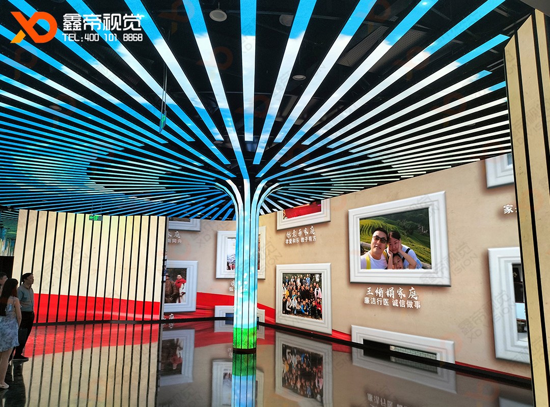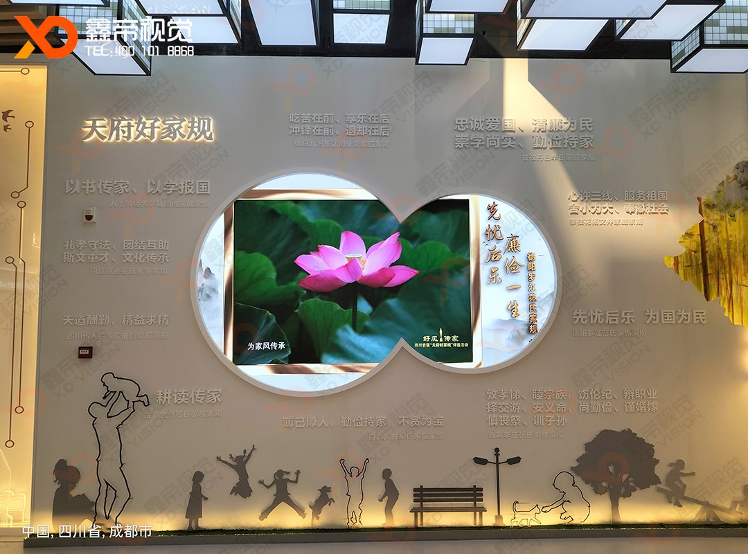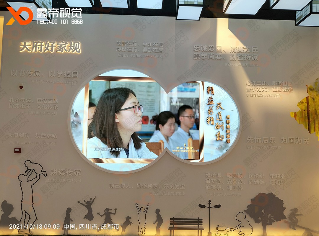 鑫帝視覺(jué)在四川天府家風(fēng)館承建的數(shù)字化創(chuàng)意LED產(chǎn)品包括:序廳大型LED智慧樹(shù)、LED圓形屏、LED幻影成像、LED冰屏、各種戶(hù)內(nèi)高清LED屏等十多個(gè)展項(xiàng)……至此,成都又多了一張彰顯中華民族深厚歷史文化底蘊(yùn)的靚麗名片......