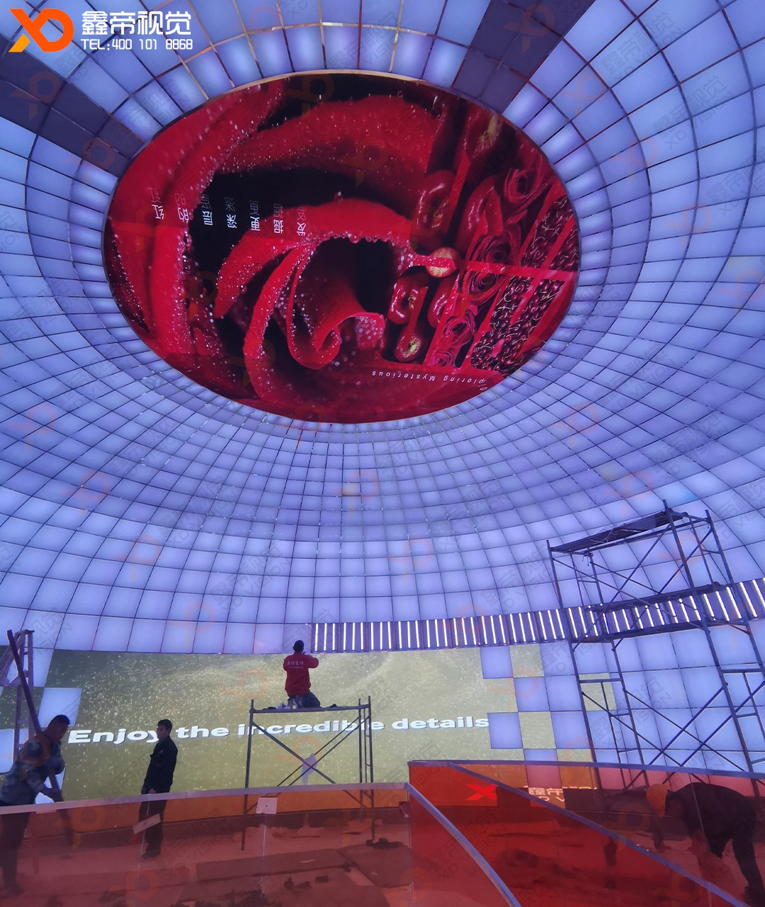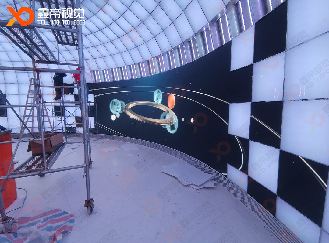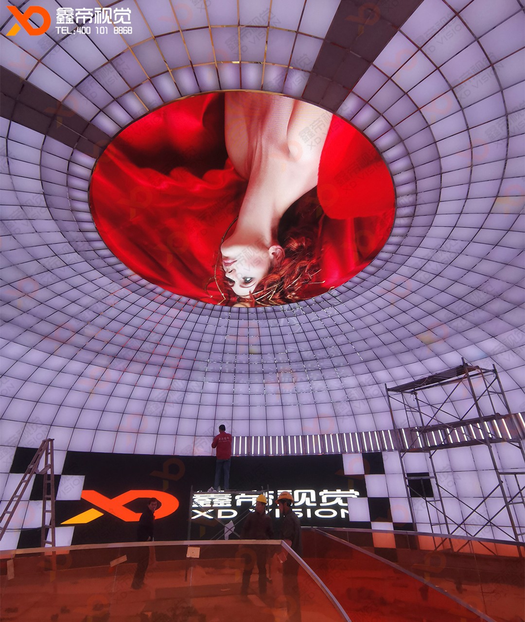 LED圓形藝術天幕就是橫亙在空中的一塊巨大的圓形LED全彩顯示屏,通過電腦控制,播放視頻動畫,夢幻海洋、美麗花海等,強烈的動感給您帶來震撼的視覺效果,宛如置身于浩瀚宇宙,或者歷史河流,盡情穿梭于現(xiàn)實和夢幻之間。