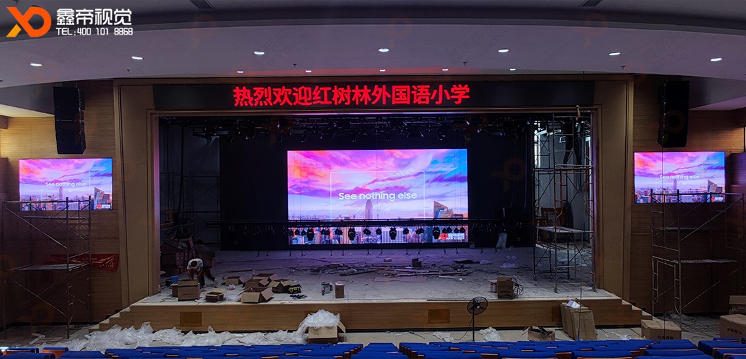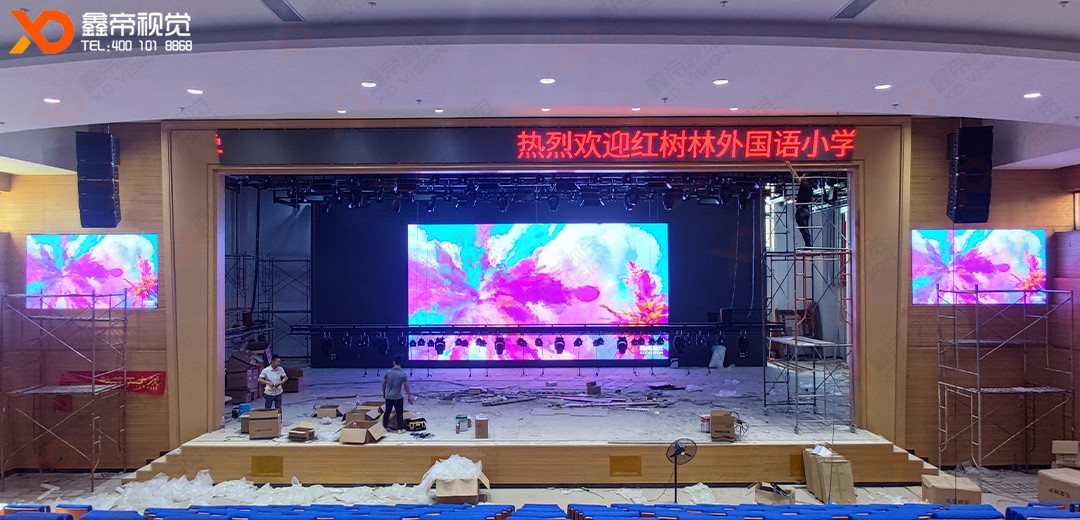 深圳紅樹林外國語小學(xué)LED舞臺屏安裝調(diào)試完成,此個(gè)項(xiàng)目由鑫帝視覺傾力打造,采用戶內(nèi)高清高刷LED顯示屏100多平米,為廣大學(xué)生呈現(xiàn)一個(gè)靚麗的舞臺背景,也為莘莘學(xué)子開學(xué)助力。鑫帝視覺戶內(nèi)舞臺背景LED顯示屏主要優(yōu)勢在于畫面顯示細(xì)膩、色彩逼真、多畫面顯示、無縫拼接、良好的散熱系統(tǒng)、拆裝方便靈活等,是禮堂、大型活動、演出的首選。