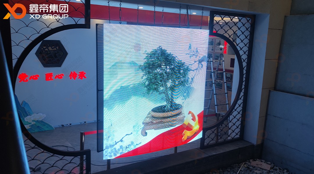 江蘇揚(yáng)州瘦西湖風(fēng)景區(qū)揚(yáng)派盆景工匠黨建館P2.8雙面弧形LED冰屏項(xiàng)目安裝調(diào)試完成。