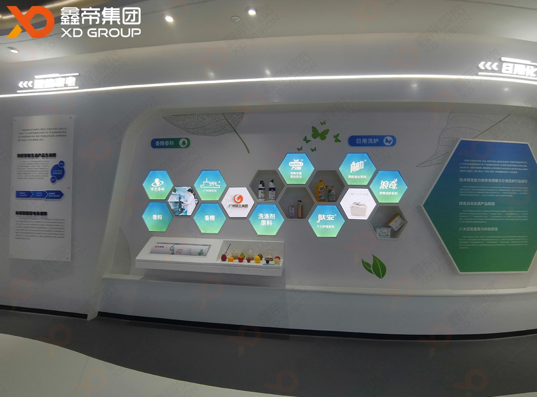 鑫帝集團(tuán)定制創(chuàng)意LED視覺項目亮相廣州輕工集團(tuán)展廳,其中包括序廳內(nèi)弧形LED顯示屏、異形P1.5 LED智慧樹、LED六邊形屏和L幕四個展項,為廣大觀眾帶來無限創(chuàng)意。廣州輕工集團(tuán)展廳綜合運(yùn)用LED異形屏、照片、圖表、視頻、多媒體、雕塑、立體場景等多種形式,運(yùn)用大量數(shù)字化技術(shù)呈現(xiàn)集團(tuán)悠久的歷史和產(chǎn)業(yè)宏圖。以數(shù)字賦能聯(lián)通全球市場,打破時間、空間和行業(yè)的壁壘;整合上下游資源,解決供應(yīng)鏈及產(chǎn)業(yè)鏈上的痛點(diǎn)、堵點(diǎn);觸達(dá)市場,推動產(chǎn)業(yè)鏈上企業(yè)共贏發(fā)展。