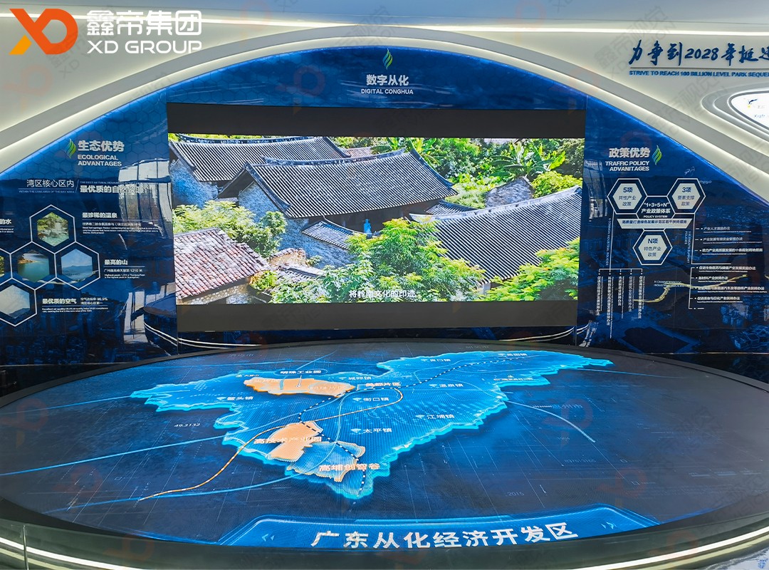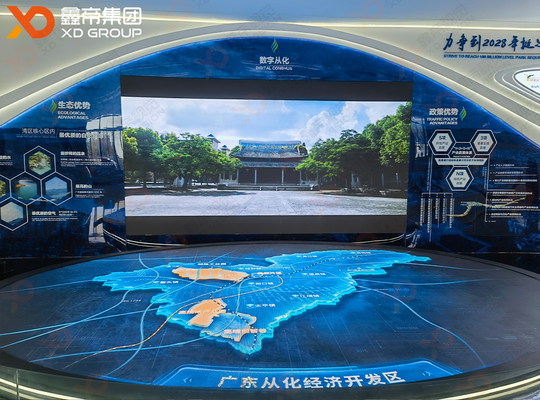 廣東從化經(jīng)濟開發(fā)區(qū)定制P1.8圓餅屏和P2戶內(nèi)高清立面屏安裝點亮完畢。
