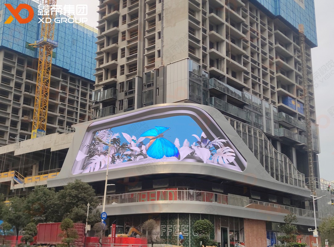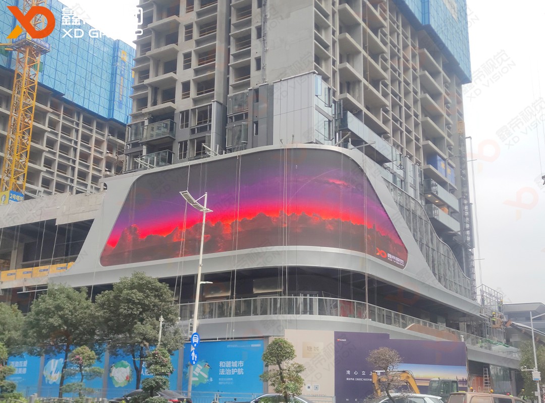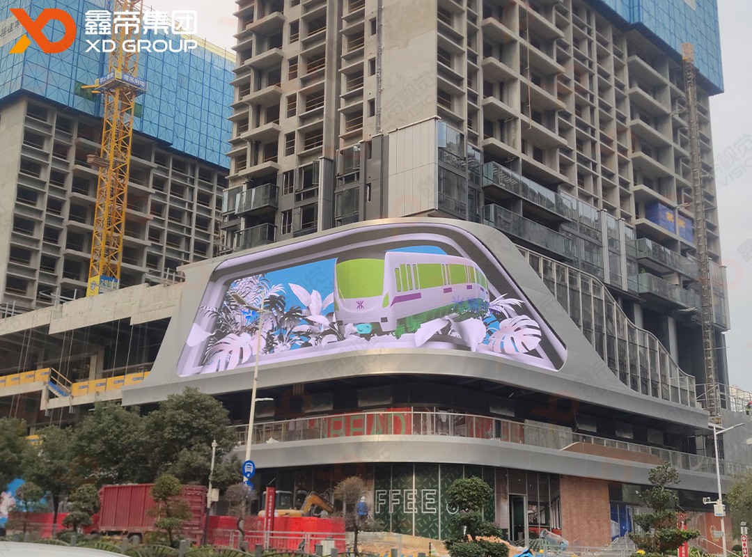 鑫帝集團高端異形定制深圳岳盟塘城壹號花園戶外裸眼3D LED大屏項目安裝調(diào)試完成,期待導入3D視頻素材,綻放絢麗效果,為整個樓盤帶來整體的升華。此個項目屬于公司家門口的項目,采用戶外P8全彩LED顯示屏,原材料配置采用國星LED燈珠+明微16169戶外大電流高刷IC+新光1.6mm厚定制阻燃PCB+新光工程料底殼+彩排線+異形定制密封箱體等高端原材料進行生產(chǎn)制作。整個屏幕色彩鮮艷、穩(wěn)定性高,亮度7000CD以上,給人很好的視覺感受。整個屏幕采用轉(zhuǎn)角異形LED屏幕,業(yè)主經(jīng)過長時間的考察和對比,其中不乏多家上市公司,最終確認和鑫帝合作,這是對鑫帝品質(zhì)的認可與放心,也是鑫帝集團在戶外裸眼3D領(lǐng)域的又一佳作。