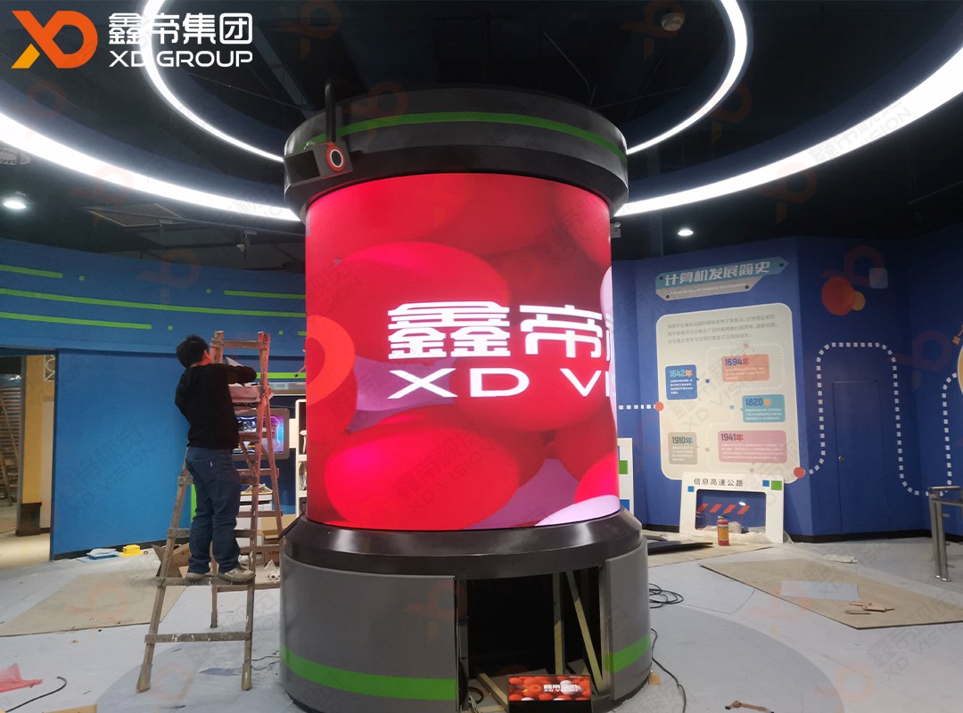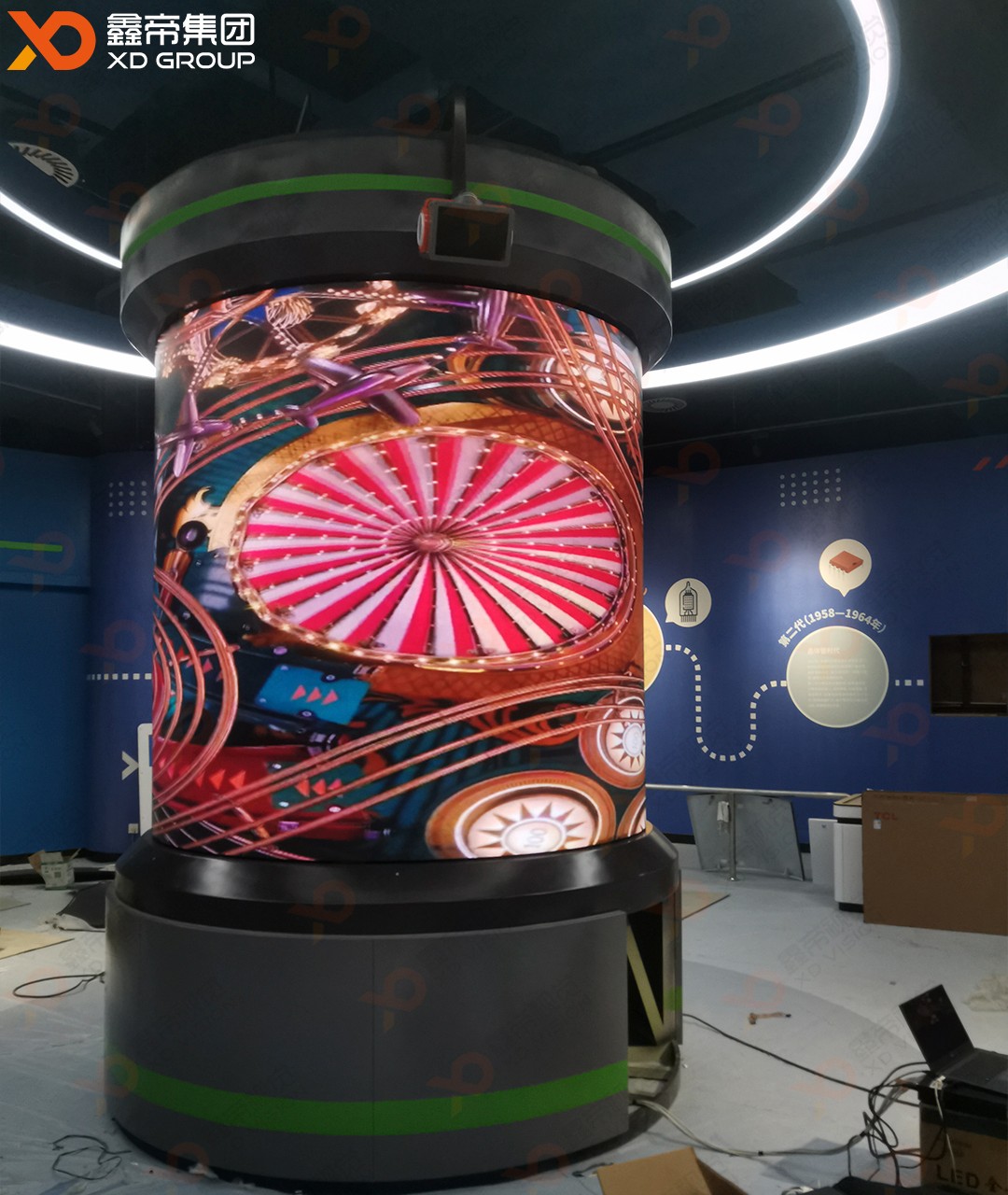 緊接著,直徑2米的LED圓柱屏以其獨(dú)特的魅力吸引了眾多目光。圓柱屏的設(shè)計(jì)靈感源自對(duì)空間利用的極致思考,它不僅滿足了信息顯示的需求,更以其流線型的外觀,為博物館增添了一份現(xiàn)代科技感。無論是在播放科普知識(shí)、歷史回顧,還是作為裝飾性元素,都能完美融入環(huán)境,為參觀者帶來全新的視覺體驗(yàn)。鑫帝集團(tuán)通過精湛的工藝和創(chuàng)新的思維,將實(shí)用性與美觀性巧妙結(jié)合,再次證明了其在LED異形屏定制領(lǐng)域的深厚底蘊(yùn)。