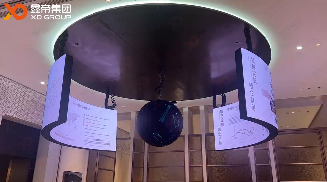 鑫帝集團(tuán)以“未來感”與“互動性”為核心,為項(xiàng)目量身定制了“一球雙翼”的視覺矩陣:中央采用直徑1米的P2.5球形屏,以360°無死角顯示打造科技感焦點(diǎn);兩側(cè)搭配柔性P1.5超高清雙面屏,如羽翼般延展空間張力。更突破性引入智能升降系統(tǒng),讓LED屏可根據(jù)場景需求自由變換高度,實(shí)現(xiàn)“動靜相宜”的靈動表達(dá)。在深圳寸土寸金的黃金地段,這一設(shè)計(jì)不僅最大化釋放空間價(jià)值,更以“科技+藝術(shù)”的融合重新定義了商業(yè)空間的沉浸式體驗(yàn)。