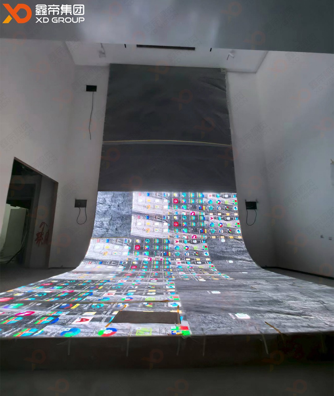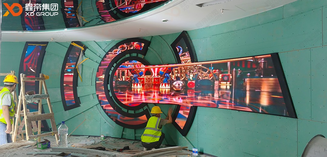 此項(xiàng)目共涵蓋 10 個(gè) LED 顯示展項(xiàng),內(nèi)容豐富多樣,充分展現(xiàn)了鑫帝集團(tuán)在產(chǎn)品選型與造型設(shè)計(jì)上的精湛技藝。項(xiàng)目中采用了 P1.8、P2 柔性模組,這兩種模組具備出色的柔韌性與顯示效果,能夠適應(yīng)不同的展示需求與空間布局,為觀眾帶來(lái)清晰、生動(dòng)的視覺體驗(yàn)。