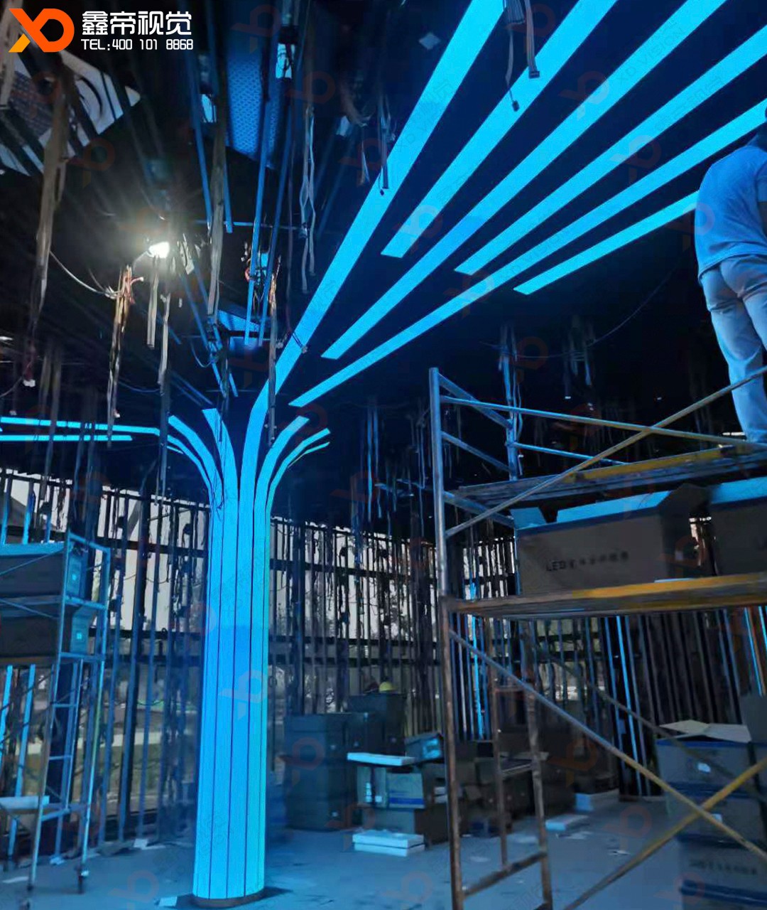 四川LED智慧樹項目正在火熱施工中......樹形LED屏是通過LED模組構造成樹形,容入聲、影、光、電,渾然交織,用高科技手段多元化、立體化顯示的LED顯示屏。廣泛應用于規(guī)劃展示、數(shù)字中心展館、商場!