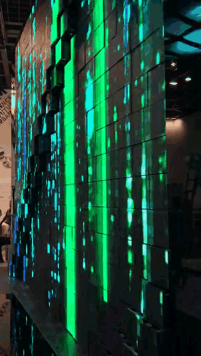 此次機械屏展示采用的是獨立的模組組成的裝置,需要重新設(shè)計排線,保證模組能夠來回自如地做伸出和縮回的運動。工程師們憑著多年創(chuàng)意屏的設(shè)計經(jīng)驗,成功解決了這個難題。