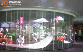 深圳市鑫帝視覺傾力打造獨家定制的LED透明環(huán)幕亮相廣東梅州丘成桐國際會議中心,該項目使用近200平米LED弧形透明屏,材料使用:高端國星2121 LED燈+高刷IC。