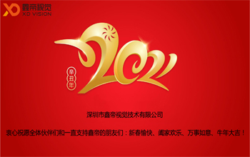 各位新老客戶:您們好!玉鼠回宮傳捷報,金牛奮地涌春潮。在度過了一個祥和、溫馨、團聚的春節(jié)之后,鑫帝視覺全體員工于2021年2月21日(農歷正月初十)正式上班,歡迎各界新老客戶來電咨詢相關業(yè)務和來廠指導工作。 鑫帝視覺全體員工感謝您們過去的一年里對我們的大力支持,在新的一年里我們將以更專業(yè)的技術、更高的品質、更好的服務回饋客戶!在這里給新老客戶拜個晚年。祝大家新年快樂,財源滾滾,萬事如意,闔家歡樂,牛年大吉! 再次感謝您們的支持與關注!