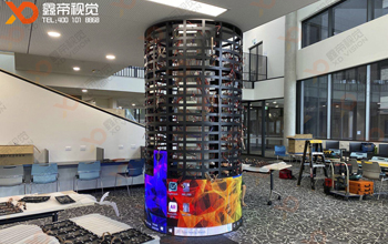 澳洲創(chuàng)意LED圓柱屏安裝中!LED圓柱屏適合360度全范圍觀看,多畫面同步顯示,徹底消除觀賞死區(qū),滿足人們對于高品質(zhì)畫面的追求,是展覽場館、高檔商場、舞臺酒吧、賭場游戲廳及其它公眾場合等眾多媒體展示場所的新寵。