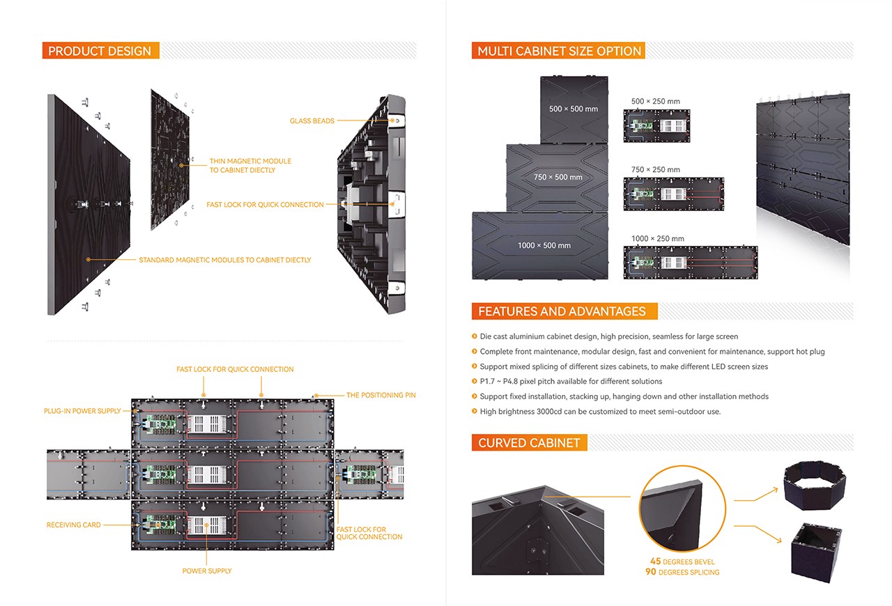 3.支持大小箱體混拼,靈活拼接滿足不同LED大屏尺寸需求;