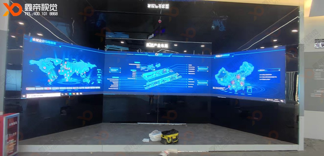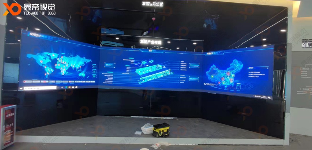 鑫帝視覺承建的廣州鼎漢公司展廳LED創(chuàng)意視覺項目安裝調試完成。鑫帝視覺定制的沉浸式三折幕由三塊LED屏幕組成,采用無縫拼接技術,創(chuàng)造出超大無縫的逼真畫面。 沉浸式三折幕比普通的LED顯示屏具備更大的顯示尺寸、更寬的視野、更多的顯示內容、更高的顯示分辨率,以及更具沖擊力和沉浸感的視覺效果。