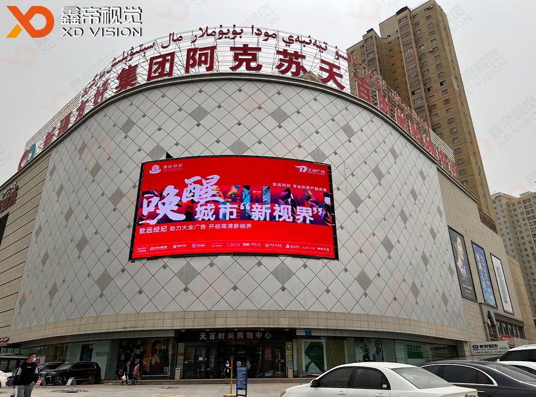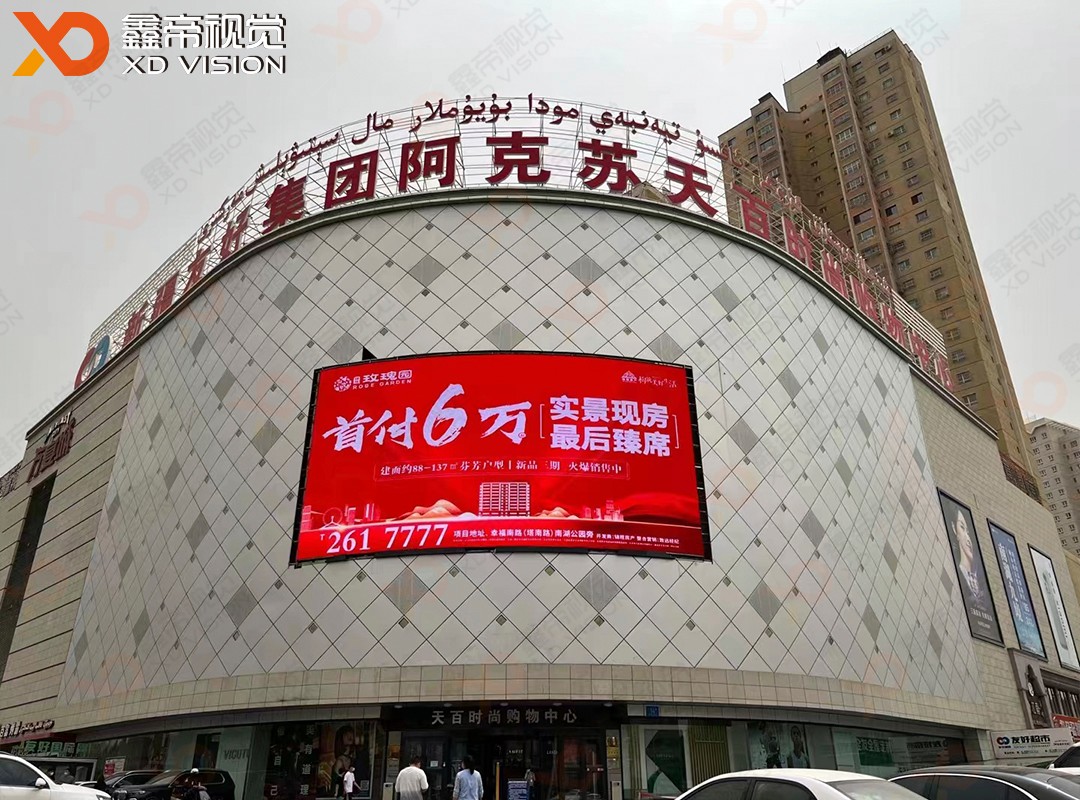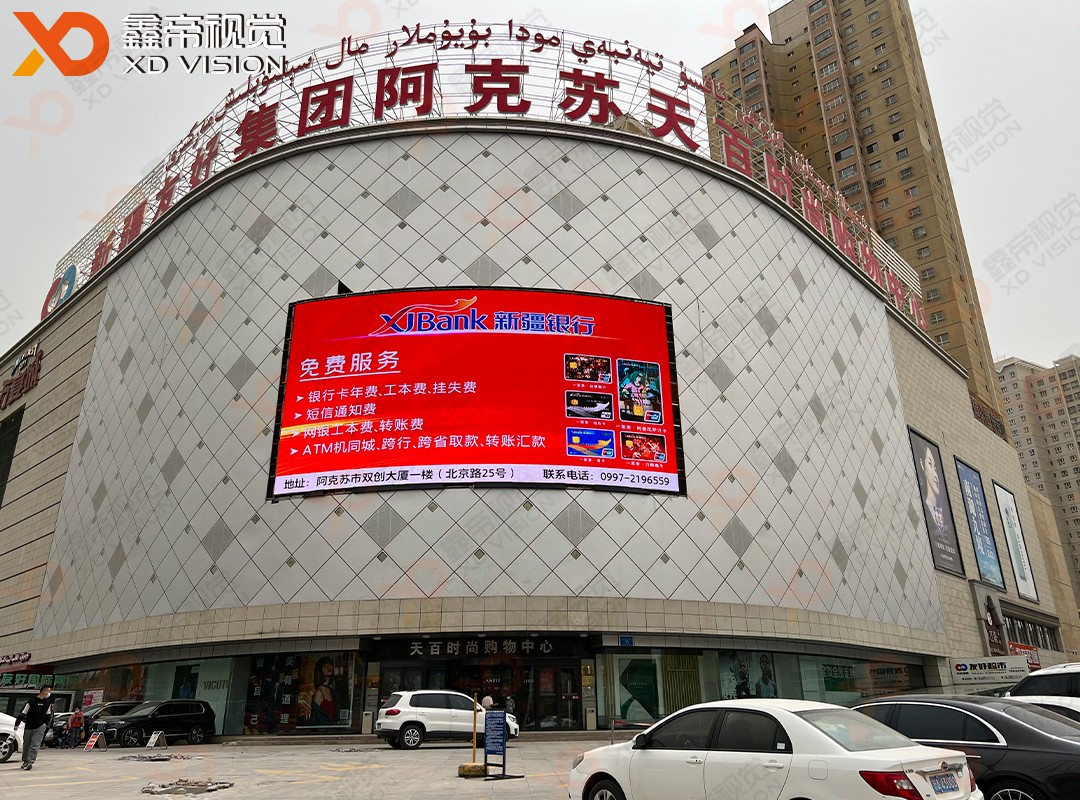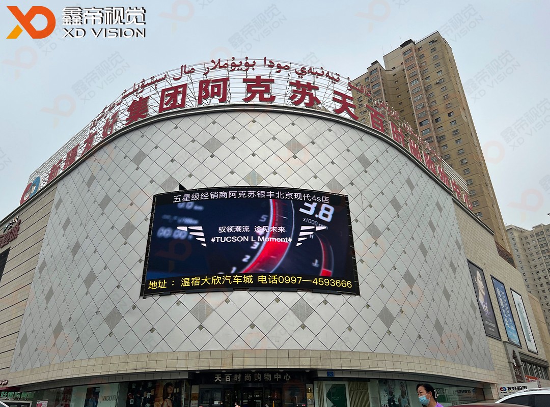 新疆友好集團(tuán)阿克蘇天百時(shí)尚購(gòu)物中心戶外高亮度高刷新項(xiàng)目安裝點(diǎn)亮完成,此項(xiàng)目由深圳市鑫帝視覺承建,獲得客戶高度好評(píng)!