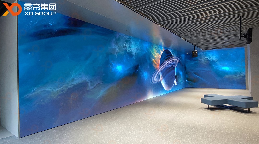 鑫帝集團(tuán)定制L幕直觀的理解就是兩塊不同平面的LED屏拼接而成的一塊完整LED屏,用于顯示一些非常規(guī)的影像內(nèi)容,通過融合軟件、三維立體處理系統(tǒng)以及智能中控系統(tǒng)將模型數(shù)據(jù)轉(zhuǎn)化為數(shù)字展示,帶來亦真亦幻的體驗感和很好的視覺感。因而也可以歸類為一種創(chuàng)新式的展示形式,可廣泛運(yùn)用于城市規(guī)劃館、數(shù)字展廳和一些創(chuàng)意Mapping秀。