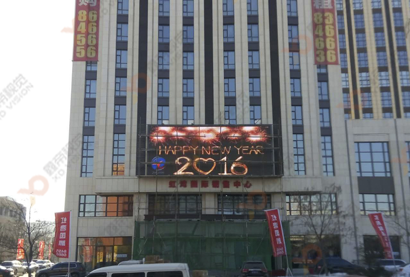 100平米戶(hù)外LED全彩顯示屏項(xiàng)目亮相長(zhǎng)春虹灣國(guó)際中心。
