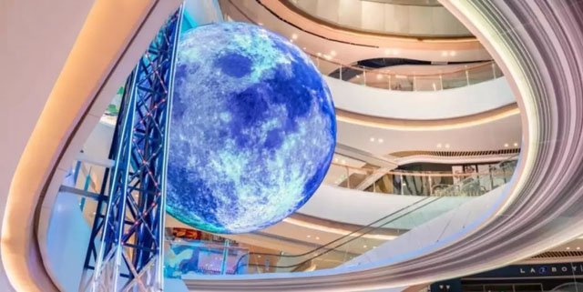 新城吾悅廣場以“旅行·家”為主題特別定制商場中庭直徑為4米的巨型球形LED屏幕,與商場的整體結構和環(huán)境完美融合,成為商場的一大亮點。