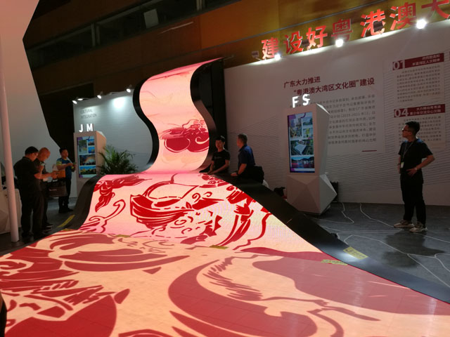 據(jù)統(tǒng)計,本屆文博會展覽面積10.5萬平方米,展商數(shù)量2312家,分會場數(shù)量66個,超過100個國家和地區(qū)的觀眾前來參展;展出10余萬件海內(nèi)外文化產(chǎn)品,近6000個文化產(chǎn)業(yè)投融資項目在現(xiàn)場進行展示與交易。在粵港澳展示區(qū)的創(chuàng)意LED顯示屏格外顯眼,綻放創(chuàng)意LED顯示屏的魅力,展示現(xiàn)代化城市科技之美。