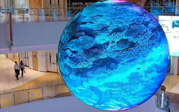 市場上最早出現(xiàn)的球屏,俗稱西瓜皮球形屏,它由西瓜皮狀的PCB組成,它的優(yōu)點是結(jié)構(gòu)直觀,PCB的種類較少,其致命的缺點是南北二極(即北緯45°以北,南緯45°以南)不能正常播放圖像,因此畫面利用率太低或圖像變形嚴(yán)重。原因是目前所有的圖像源的像素點排布都是成行成列的,而西瓜皮LED球形屏的南北二極的像素點排布不是成行成列排布的,而是圈狀排列的,因此難以顯示。