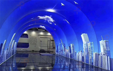沉浸式LED隧道屏是指整個(gè)隧道由LED模組拼接,無絲毫拼縫,將人置身于一個(gè)大的半圓球內(nèi),使人獲得完全的沉浸感、臨場(chǎng)感、真實(shí)感。